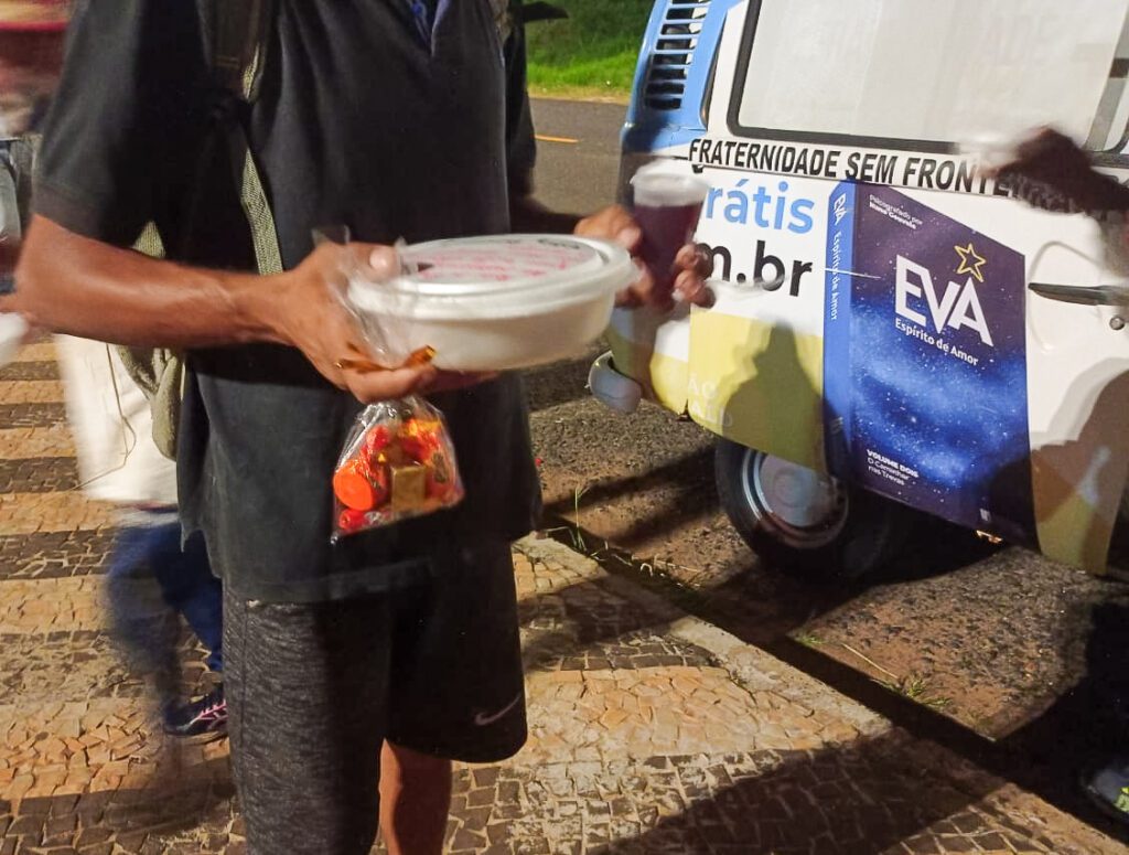 Ofertamos refeições para pessoas em situação de rua que estão em praças, viadutos, pontos próximos ao terminal rodoviário e outros. Tudo preparado com muito cuidado, acrescentando a oferta de água fresca, escuta ativa e muito amor!